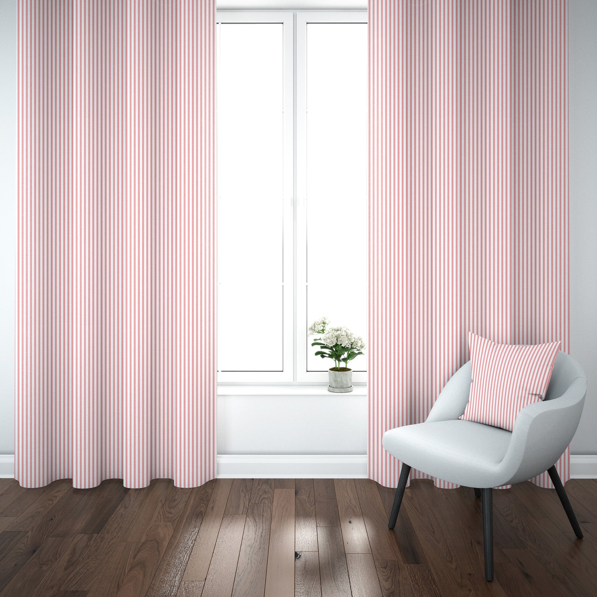 Back Tab Curtain Panels Pair in Classic Lipstick Red Ticking Stripe on White