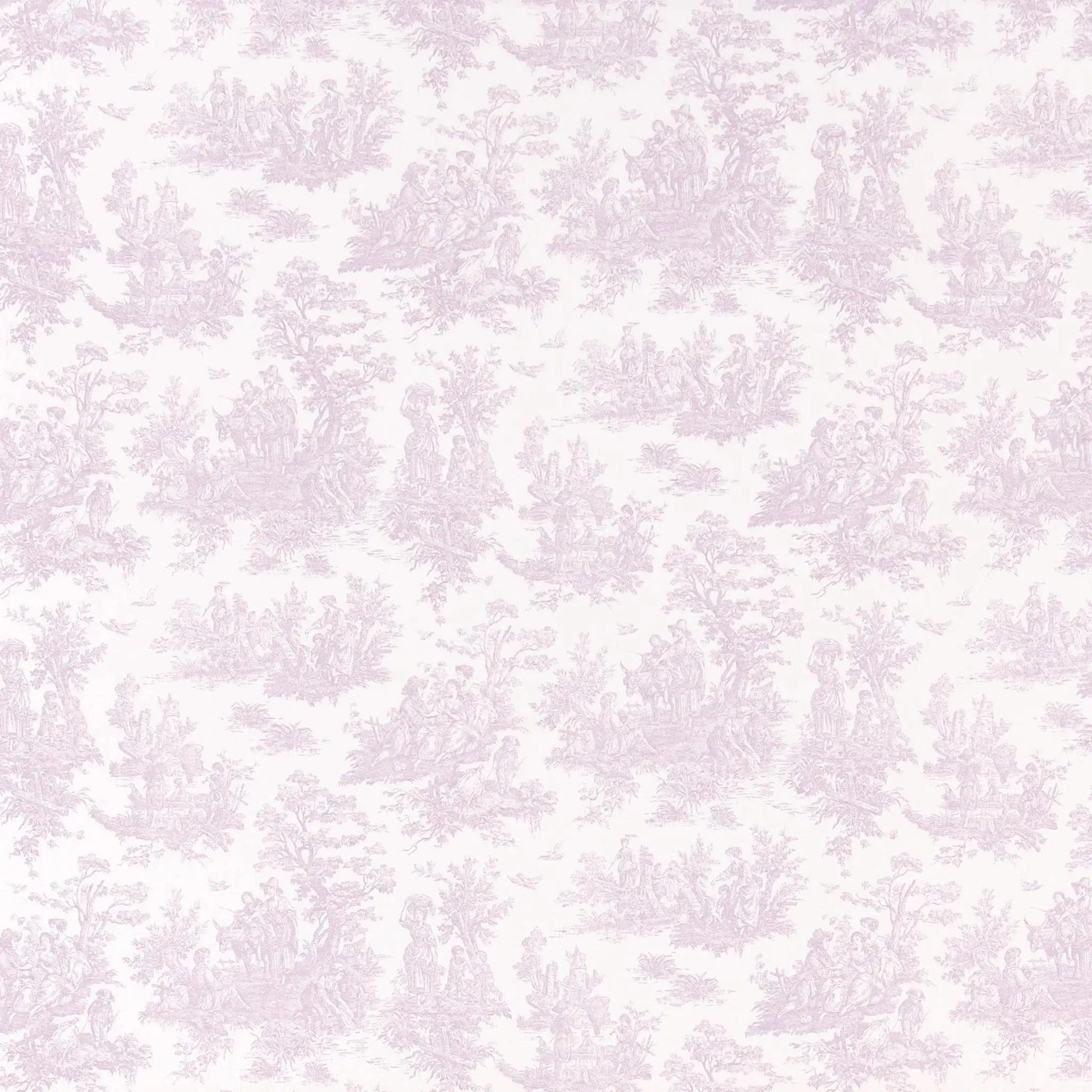 If you are looking for a rustic toile in a smaller scale this one will be perfect. Sweet scenes of country life are depicted in pale orchid and white.