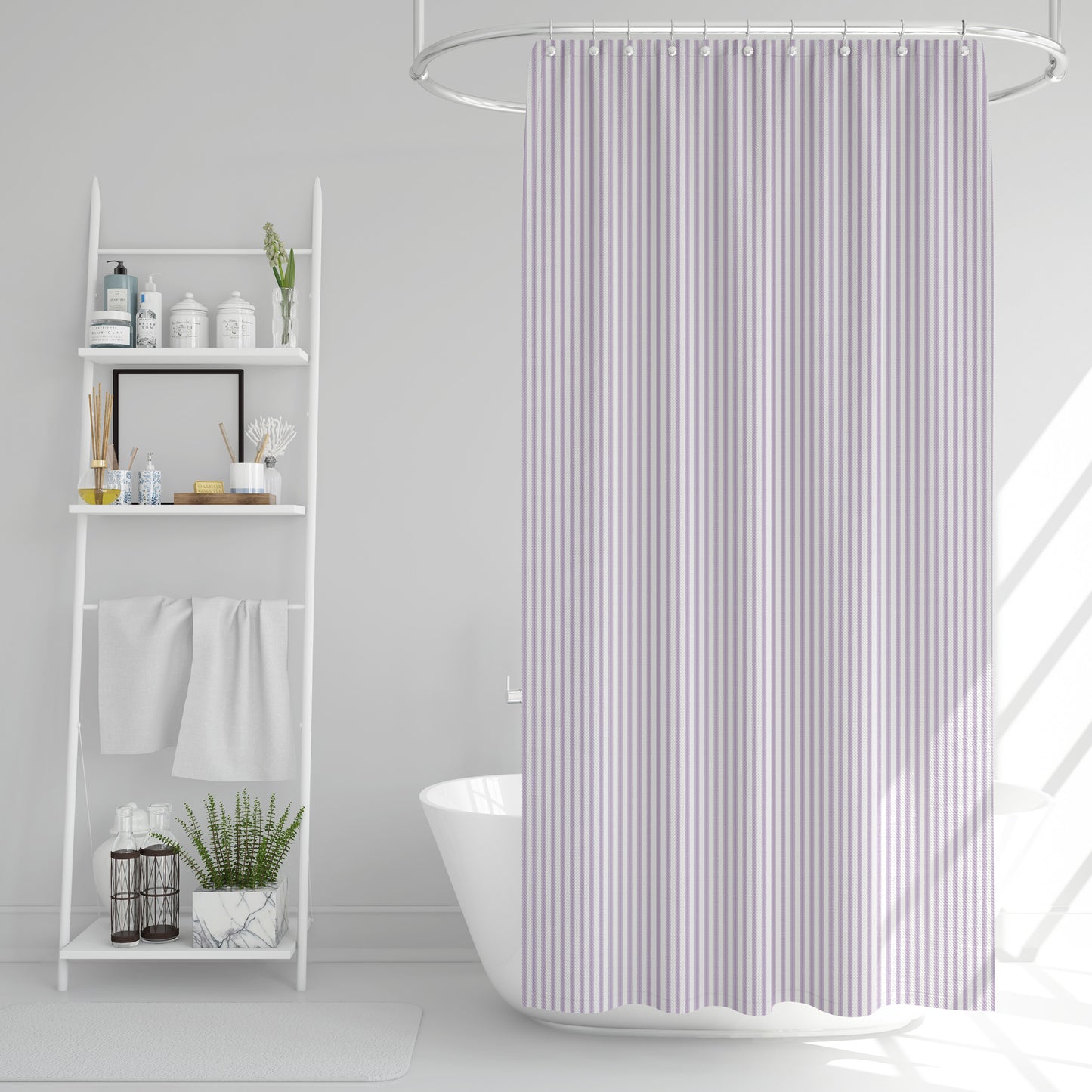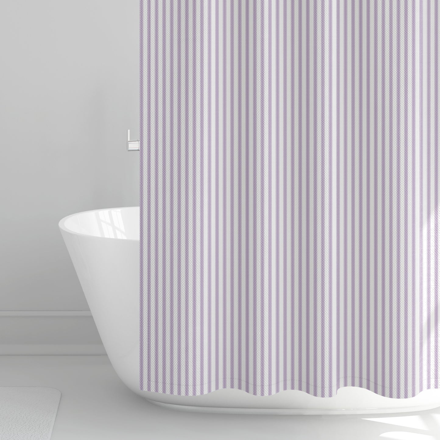 Shower Curtain in Classic Orchid Lavender Ticking Stripe on White