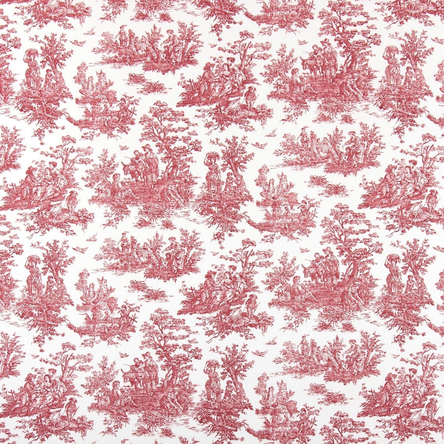 If you are looking for a rustic toile in a smaller scale this one will be perfect. Sweet scenes of country life are depicted in red and white.