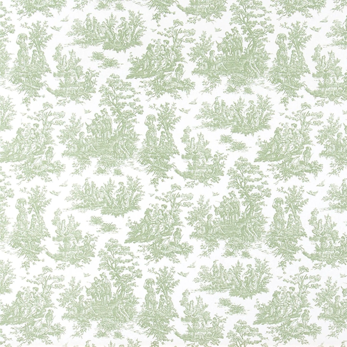 If you are looking for a rustic toile in a smaller scale this one will be perfect. Sweet scenes of country life are depicted in green and white.
